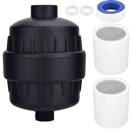 20 Stage Universal Shower Filter for Hard Water - 2 Cartridges Included - Black